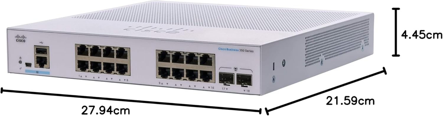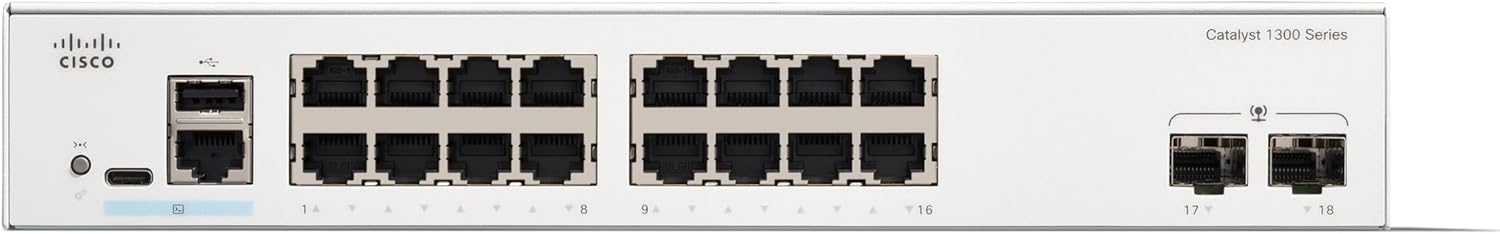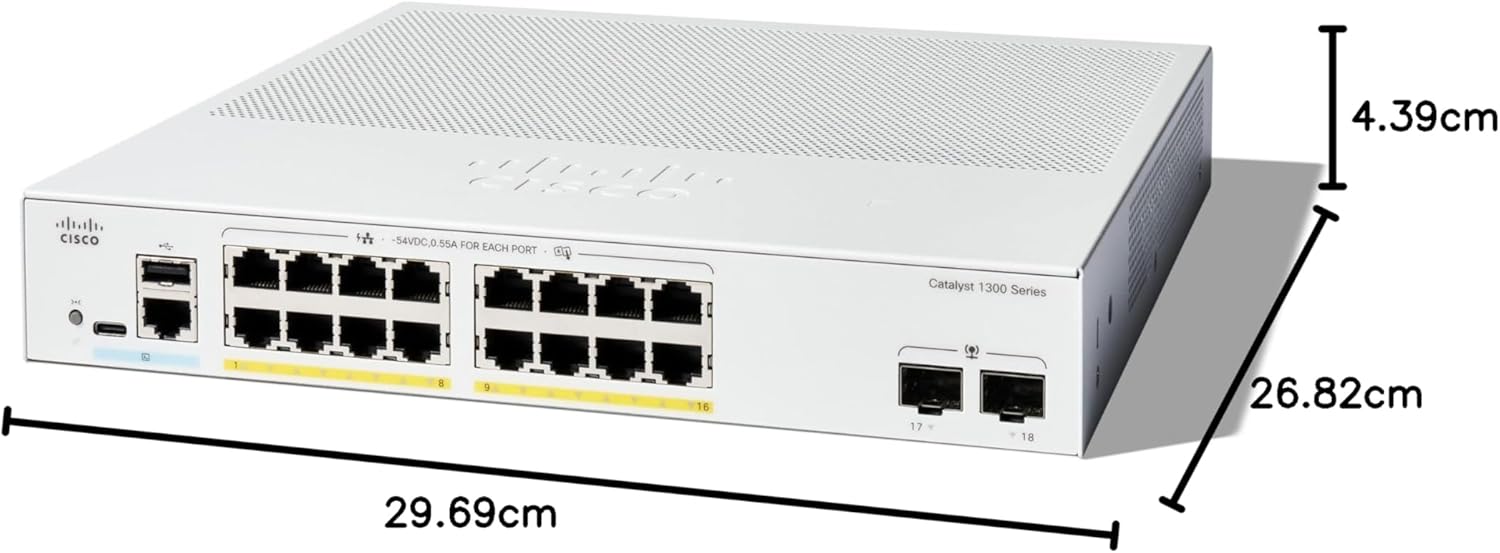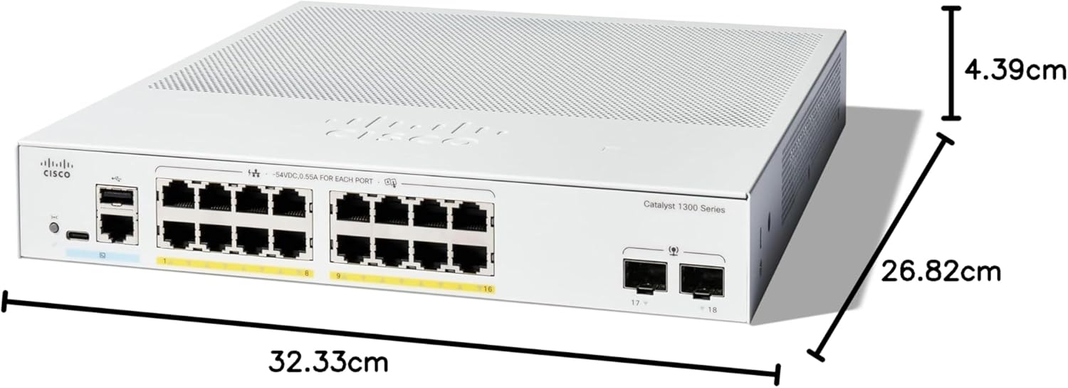 The Cisco Catalyst 1300-16P-2G switch is part of the fully managed switch line that delivers reliable and secure connectivity for small business networks. These switches accelerate your digital transformation by delivering full Layer 2/3 capabilities, an intuitive web dashboard, advanced networking features, and PoE+ support.