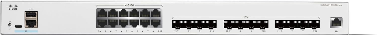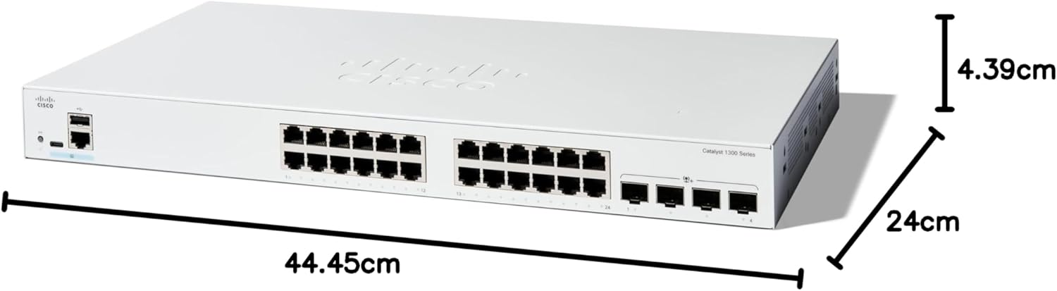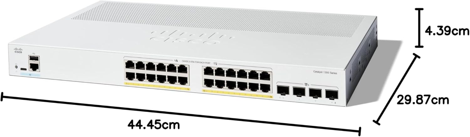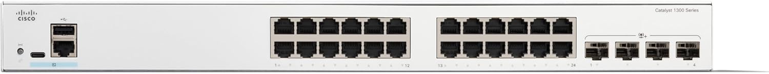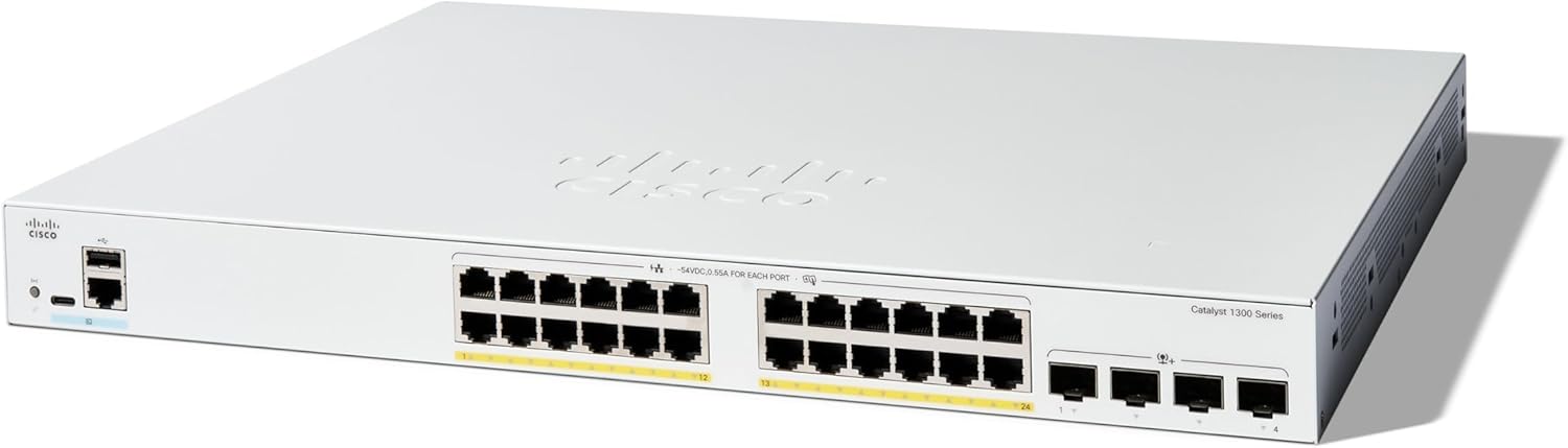 The Cisco Catalyst 1300-24T-4X switch is part of the fully managed switch line that delivers reliable and secure connectivity for small business networks. These switches accelerate your digital transformation by delivering full Layer 2/3 capabilities, an intuitive web dashboard, advanced networking features, and PoE+ support.