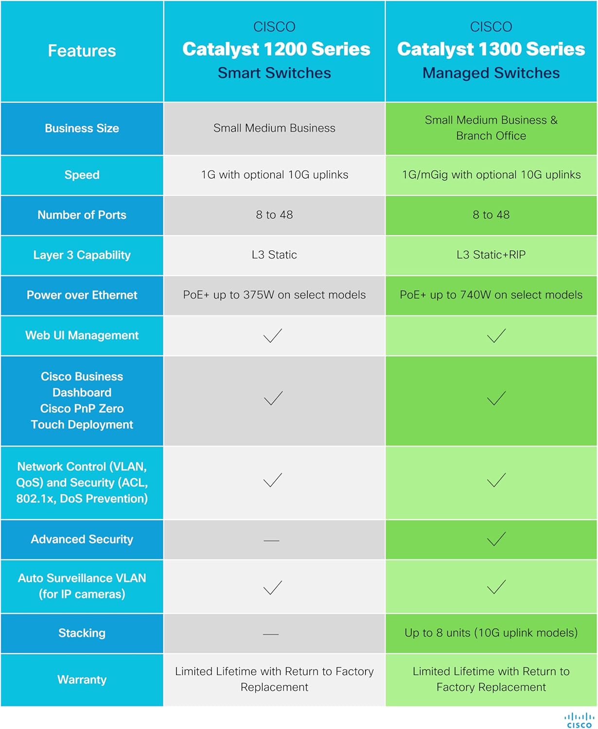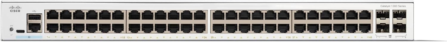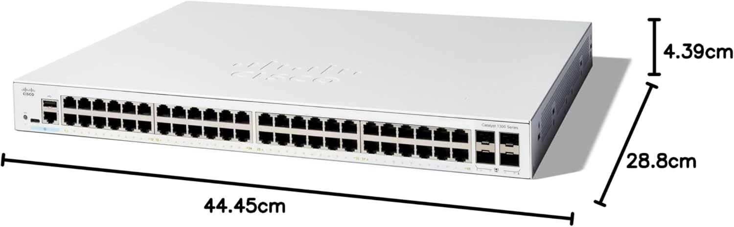 The Cisco Catalyst 1300-48FP-4G switch is part of the fully managed switch line that delivers reliable and secure connectivity for small business networks. These switches accelerate your digital transformation by delivering full Layer 2/3 capabilities, an intuitive web dashboard, advanced networking features, and PoE+ support.