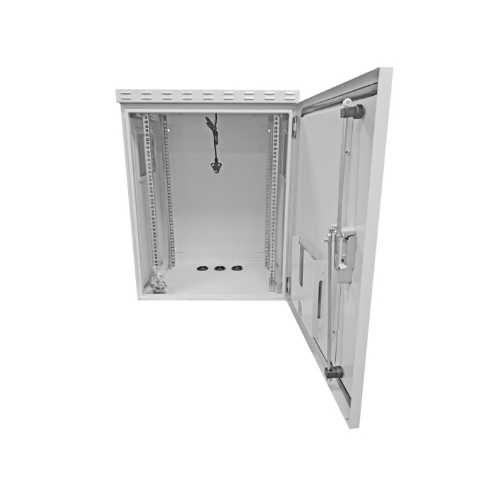 Scoop's CAB-15UO is manufactured from electro-galvanized cold rolled steel and is phosphate & powder-coated to protect against water corrosion. This unit has a solid front door with additional foam rubber padding to ensure a water-and-dust-tight seal when closed. The door's double lock system offers robust security for your outdoor installations.