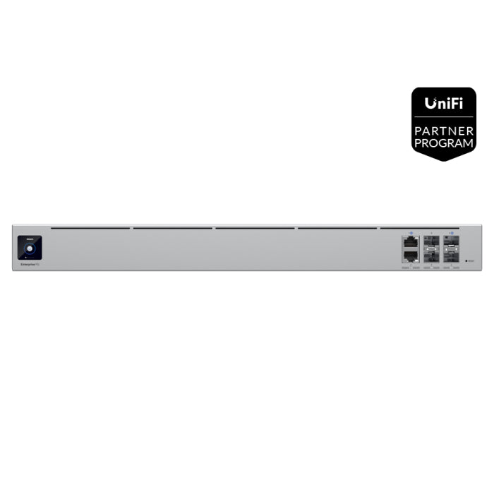 Ubiquiti's EFG is a 25Gbps, Multi-WAN Enterprise Cloud Gateway featuring 2x SFP28 25Gbps ports, 2x SFP+ 10Gbps ports and 2x 2.5Gbps Ethernet ports. It is designed for high availability and equipped with 2x hot-swap power supplies for redundancy. It features advanced routing, security, and VPN functionality with further enterprise features such as Virtual Router Redundancy, SSL/TLS inspection and anti-malware with in-line sandboxing (coming soon). A UniFi OS Console running the UniFi Network Application for scalable deployment which supports 500+ UniFi devices and up to 5000+ simultaneous client connections. It can be configured and managed through the UniFi Network Application.